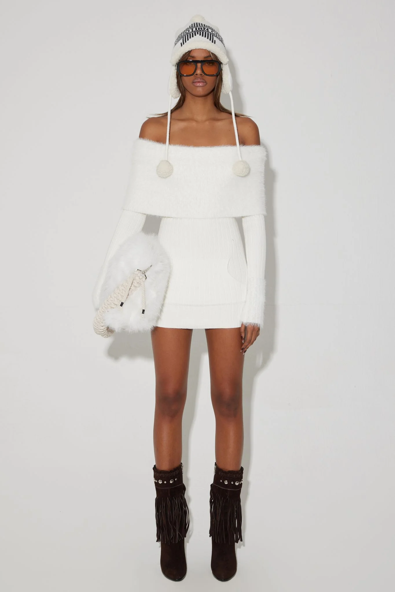 Foldable off the-shoulder panel with fuzzy texture